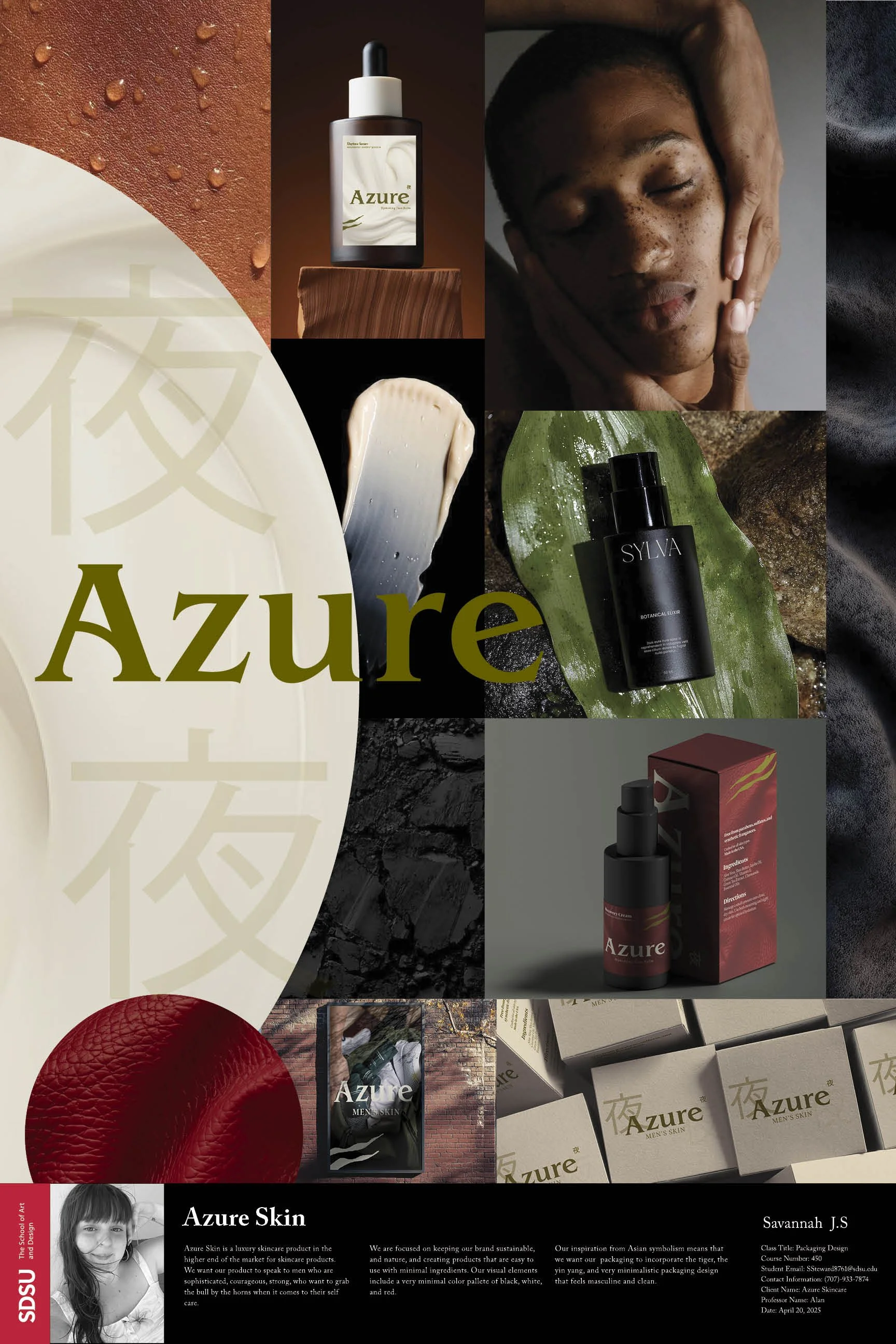 Azure Skin is a luxury skincare brand for men to indulge in their self care and feel confident in their skin. Azure is a brand meant to invoke a calm feeling of wellbeing and health. Inspired by Japanese yin and yang Azure is a minimalist brand that focuses on balance and clarity for both early mornings and late nights. Take a look into the details of the brand coming to life.